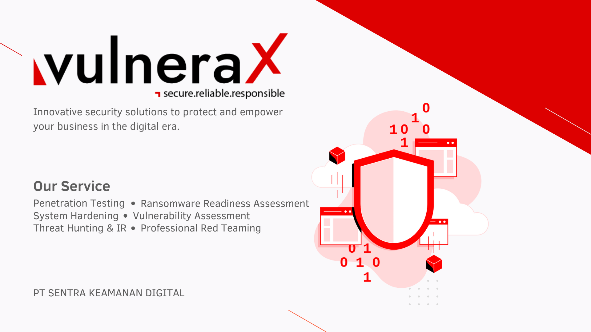 Your Digital Fortress, Built to Last. At VulneraX, we combine proven expertise, innovative solutions, and actionable insights to protect your business from evolving cyber threats. From penetration testing to ransomware readiness, our team ensures your systems are unbreakable. Ready to secure your future? Let’s create a safer digital ecosystem together.